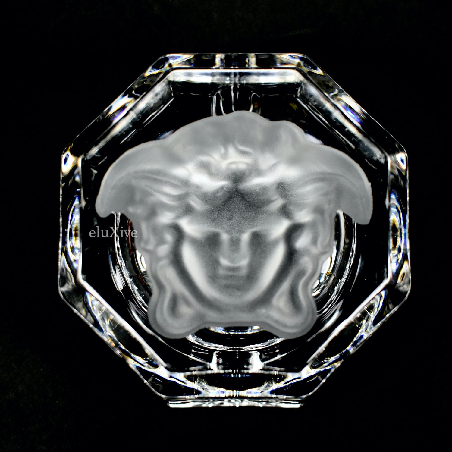 - Features signature medusa head and Greek key logos shaped in opaque 3D crystal