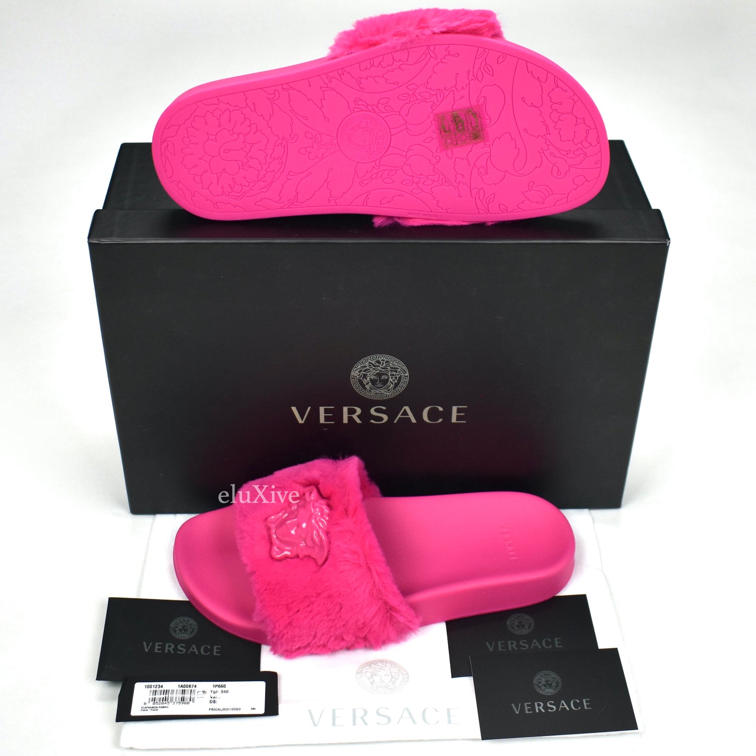 Versace - Hot Pink Faux Fur La Medusa Logo Slides