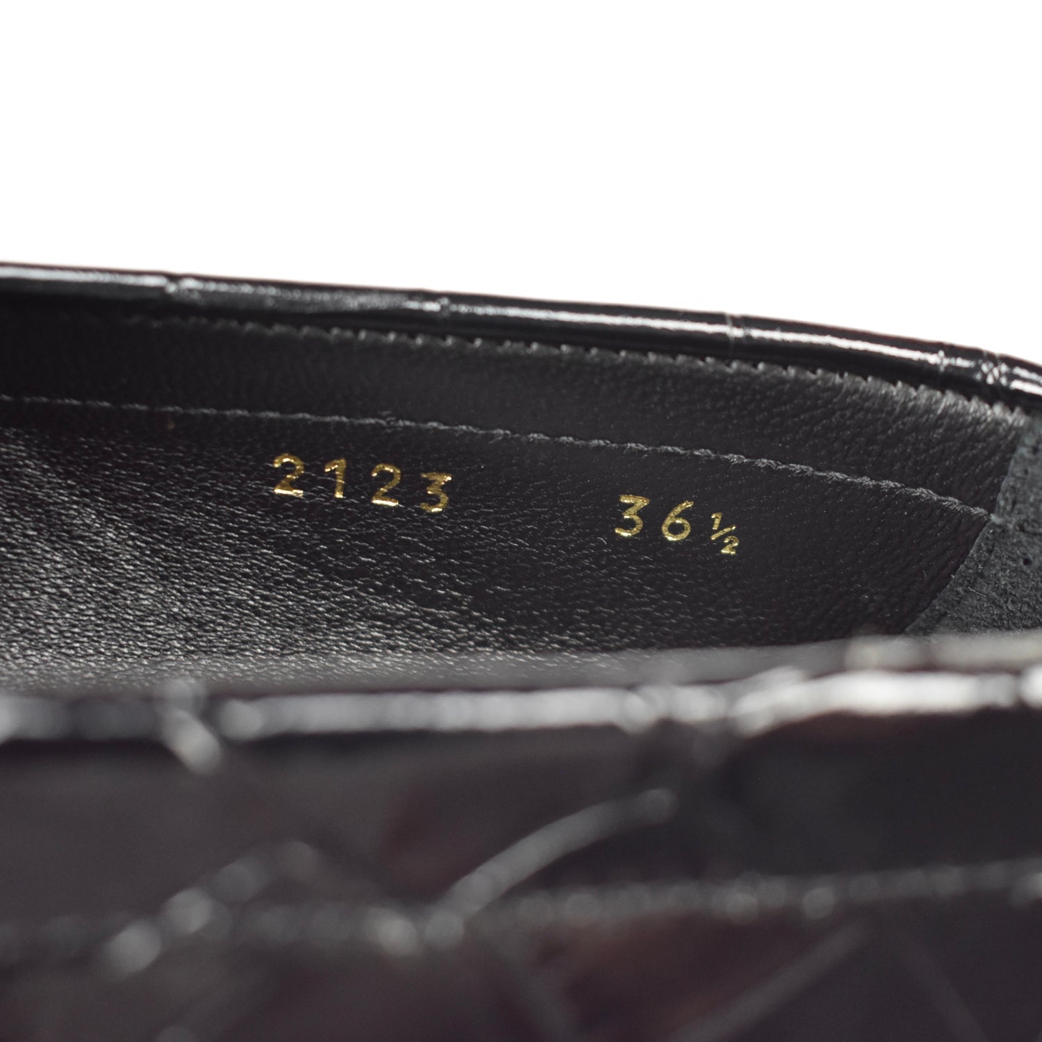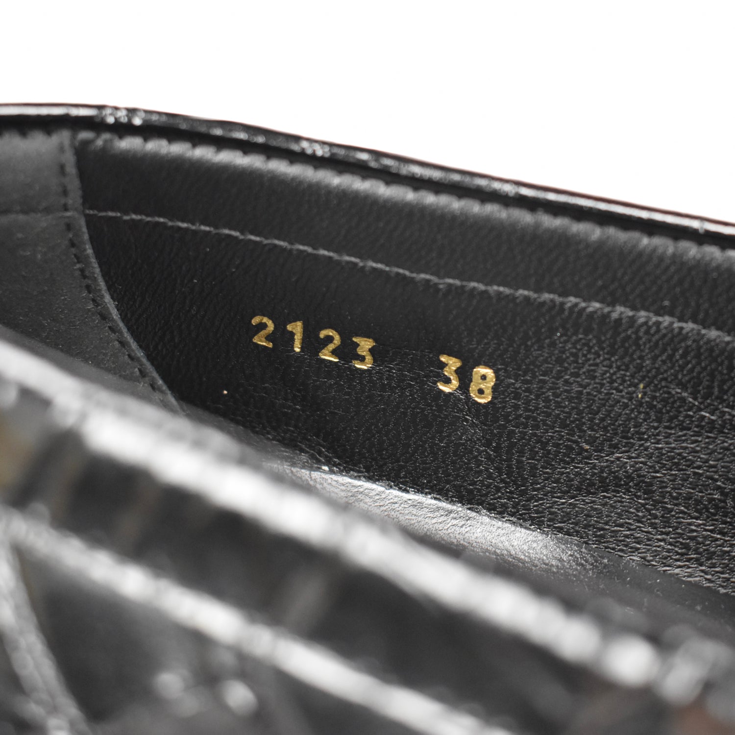 - Black calf leather upper with croc-stamped effect